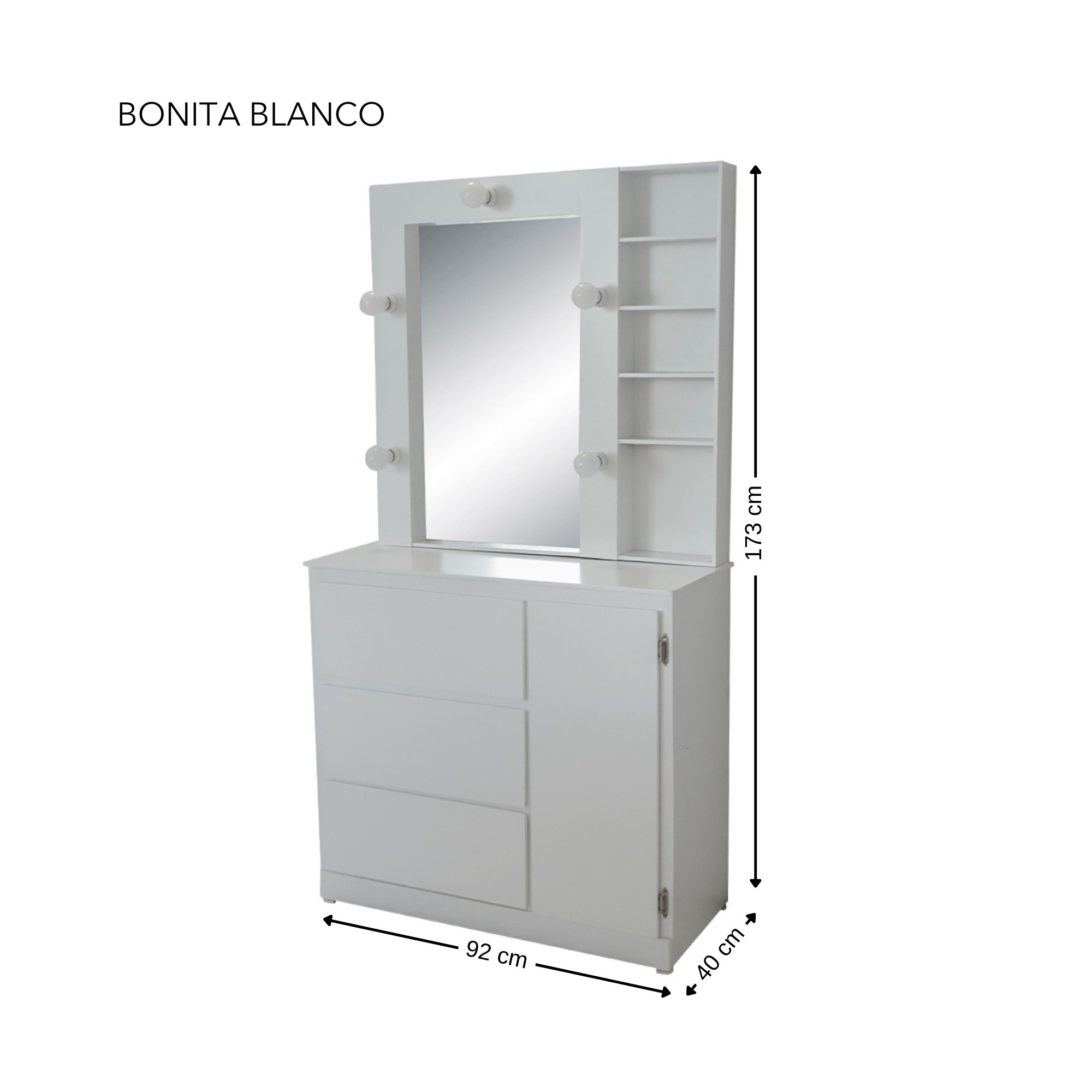 Peinador BONITA con 5 focos LED. Correderas metálicas en todos los cajones.