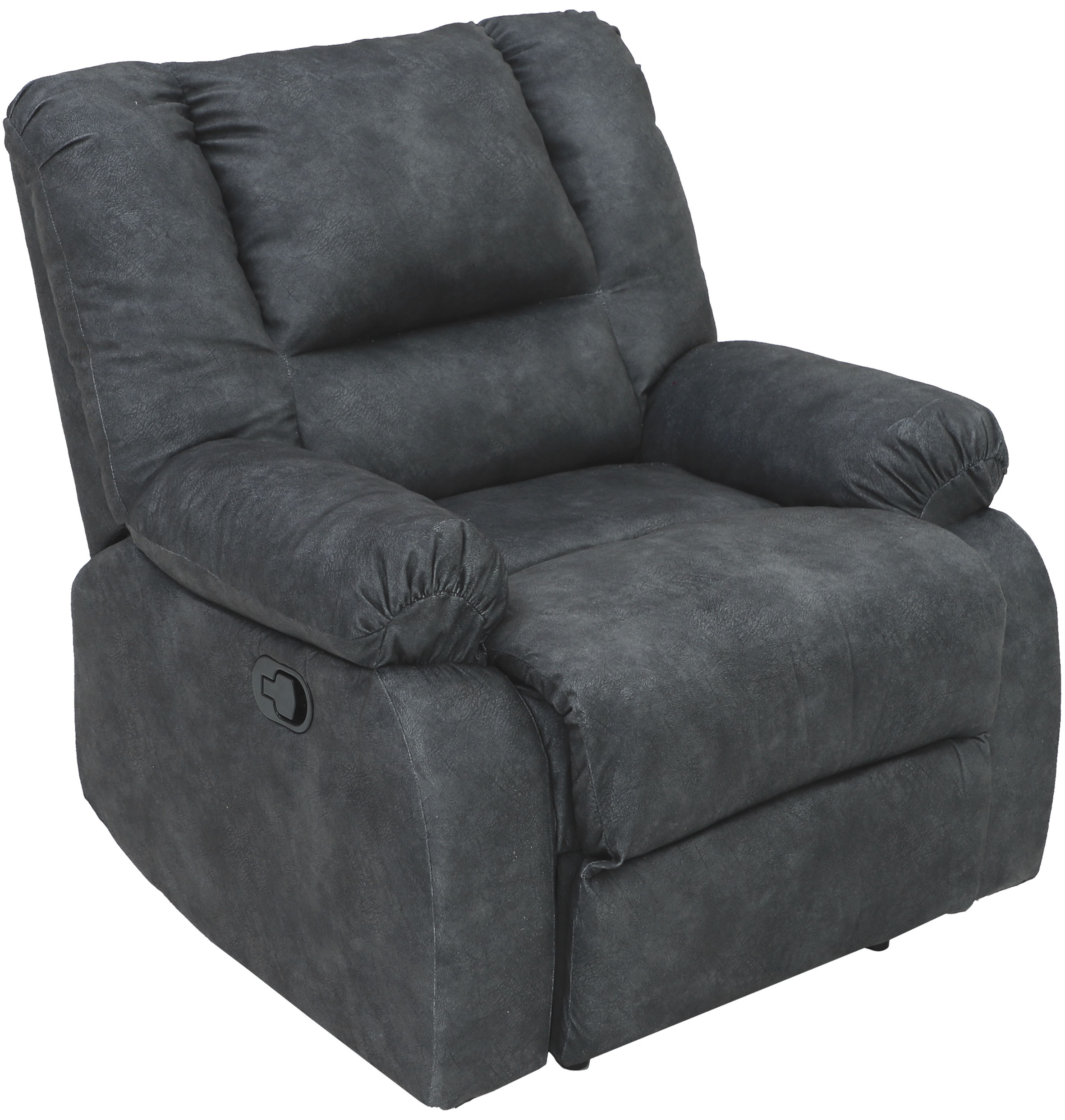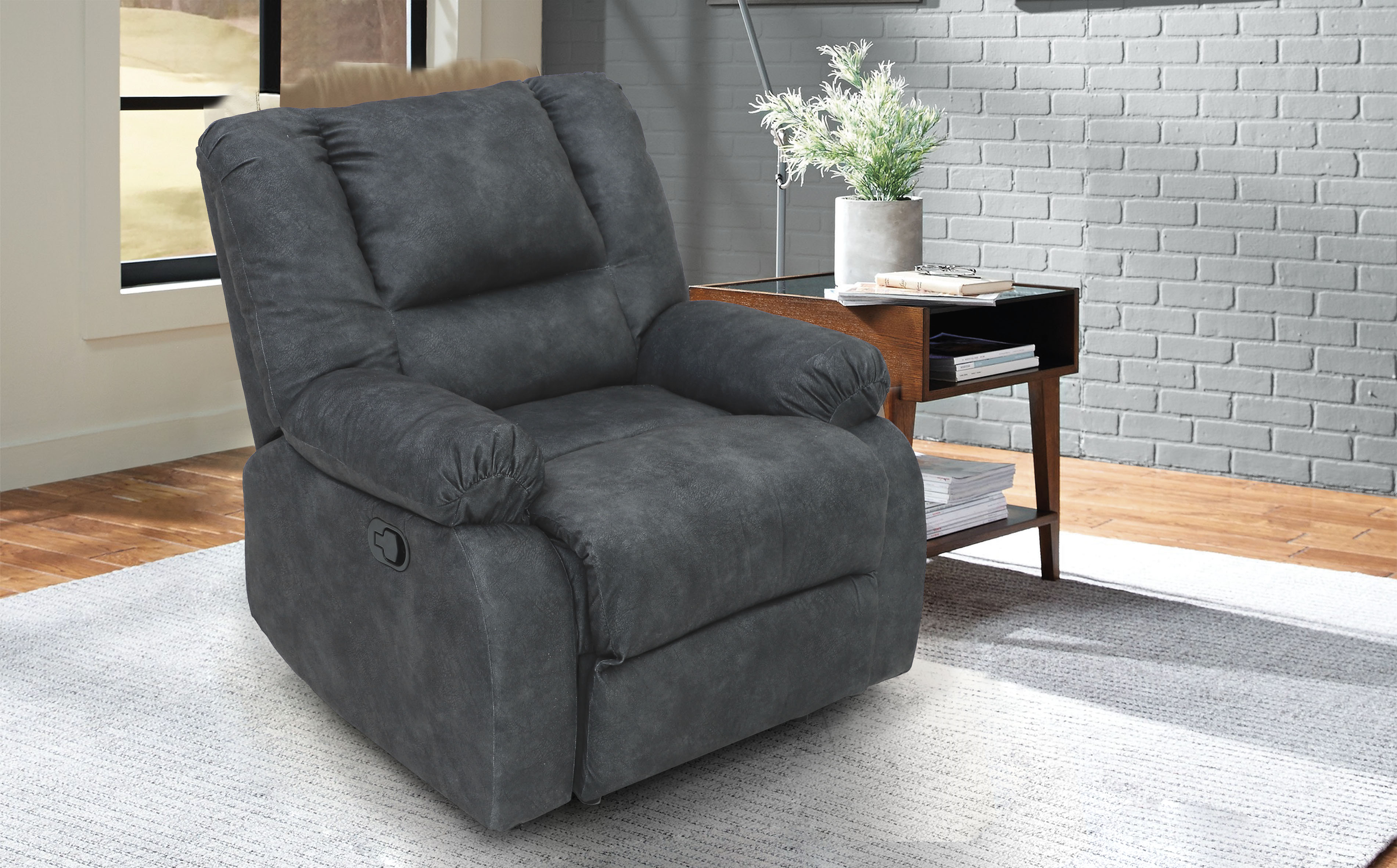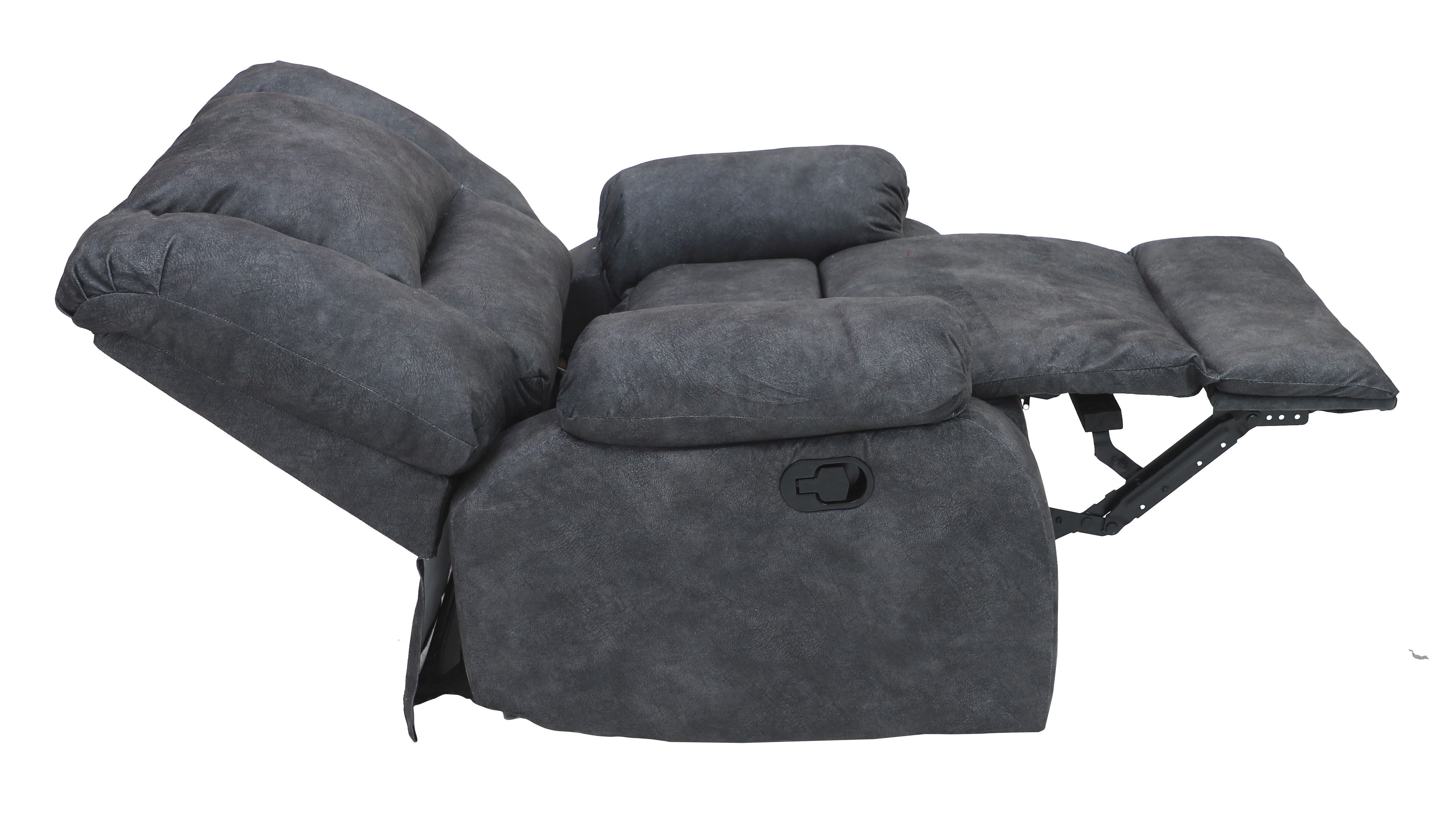 Reclinable LUGO, tapizado en tela velvet color GRIS. Mecanismo de inclinación y mecedora, no es giratorio. Reclinable abierto: 162 cm.